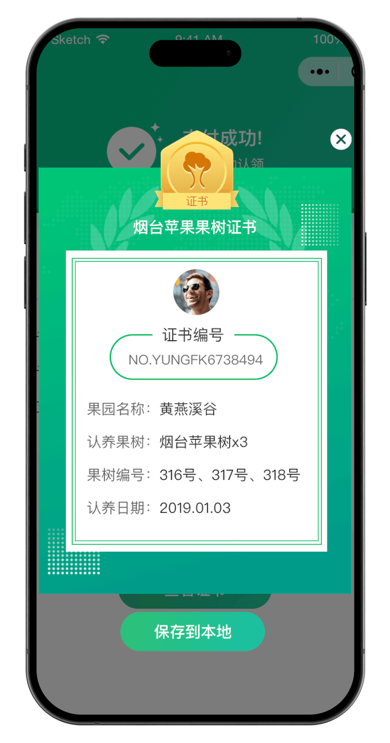 专属认养证书每一棵认养的果树都附有一份专属证书,记录认养信息,见证健康果实成长。这张证书不仅是认养的凭证,更是值得分享的纪念品,让用户可以自豪地在朋友圈展示属于自己的果树 -
